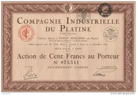 Платинопромышленная Компания была основана в Париже в декабре месяце 1898 года. ВЫСОЧАЙШИМ Указом от 19